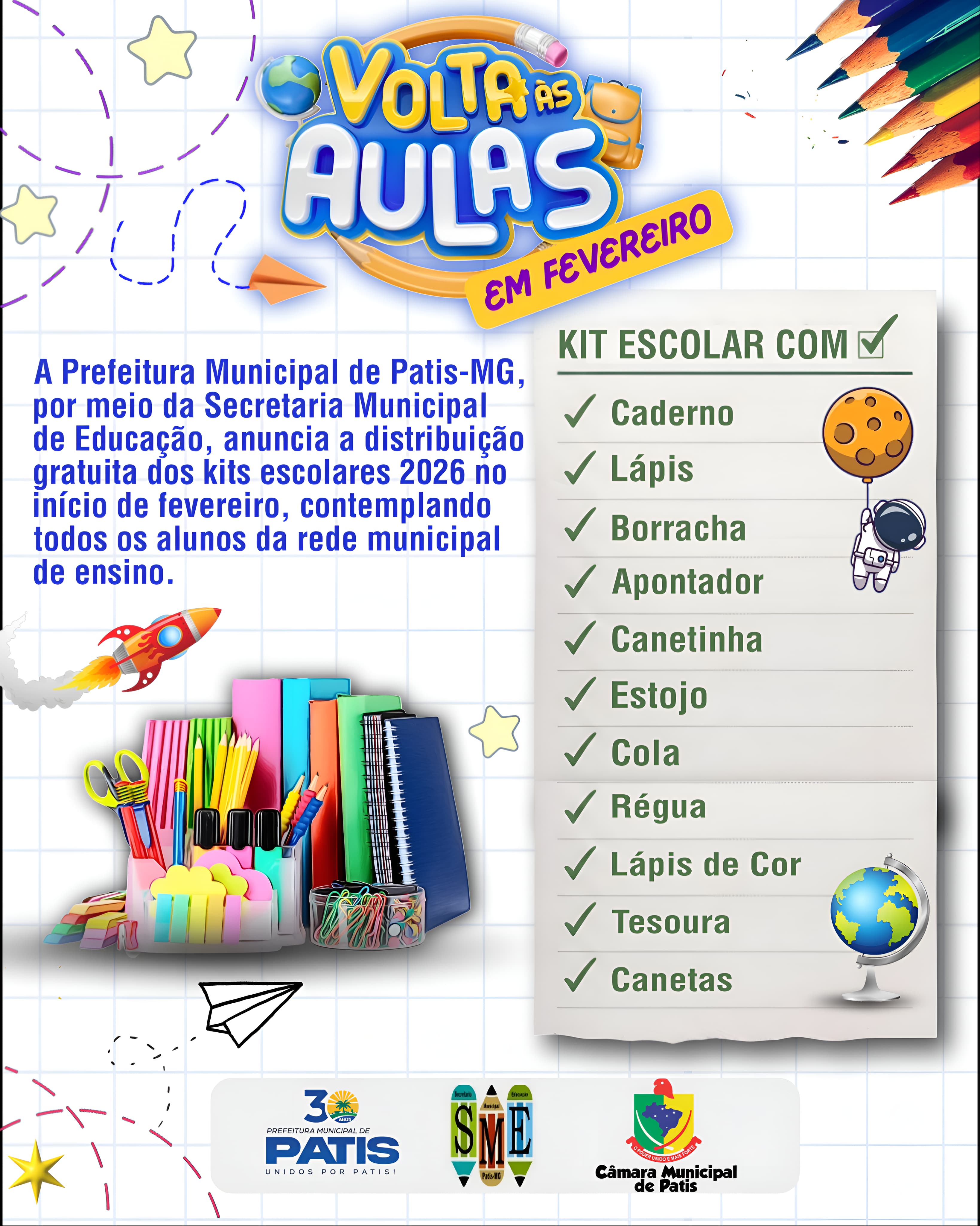Kit de Material Escolar 2026 Preparando o futuro dos nossos alunos! A Prefeitura Municipal de Patis, por meio da...