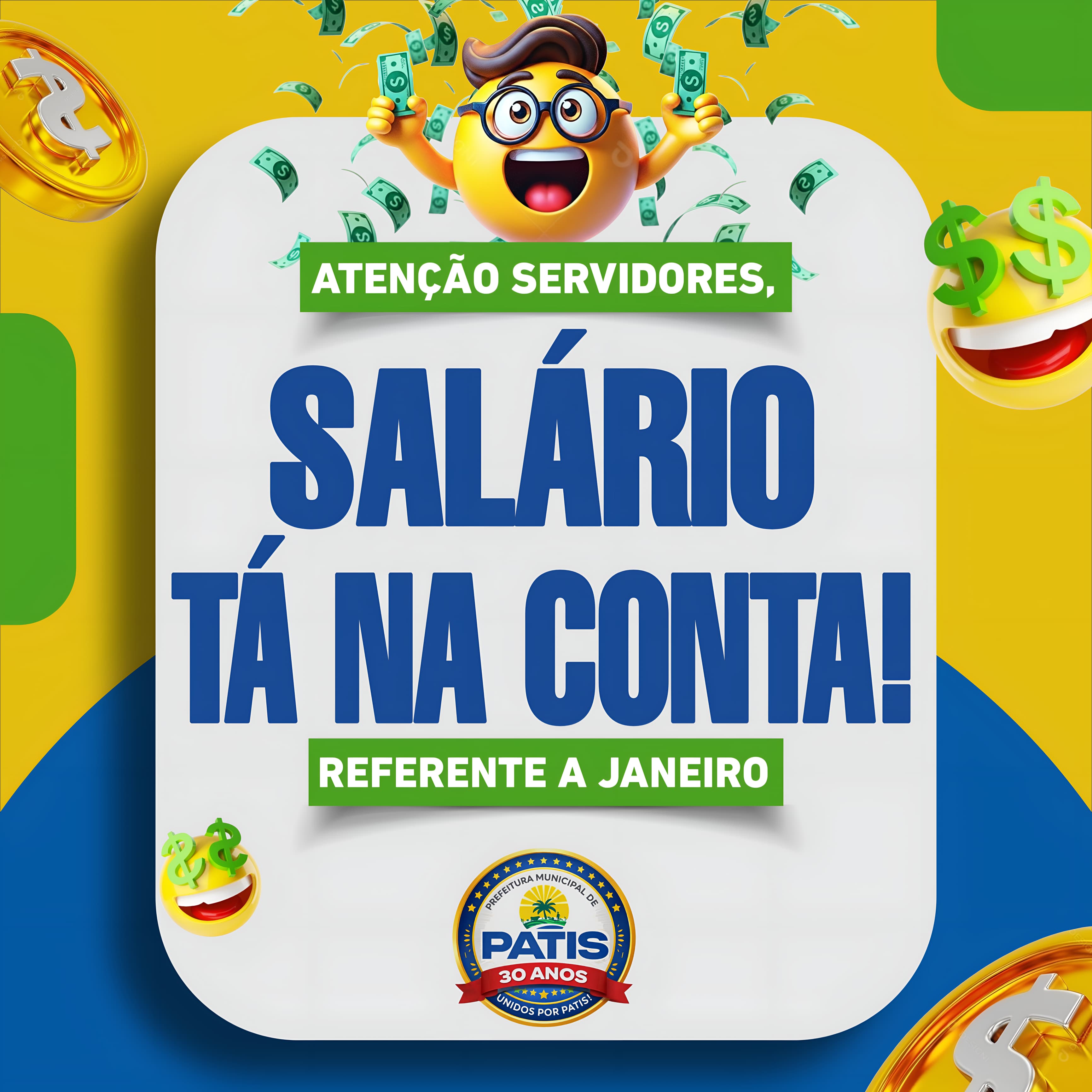 SALÁRIO NA CONTA A Prefeitura Municipal de Patis informa que o pagamento dos salários dos servidores públicos,...